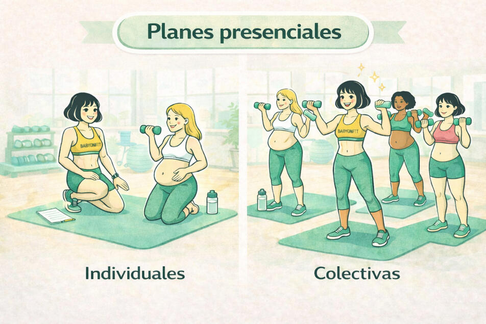 Se trabaja en grupos reducidos de máximo 8 mujeres, lo que permite una atención cercana y adaptaciones según la etapa de cada alumna.¿Cómo funcionan?- Todas las alumnas se conectan a la vez en el horario programado y realizan un entrenamiento guiado en directo por la entrenadora, que supervisa la técnica, adapta ejercicios y acompaña durante toda la sesión.¿Qué incluyen las clases?-Entrenamiento de fuerza adaptado a embarazo o posparto.