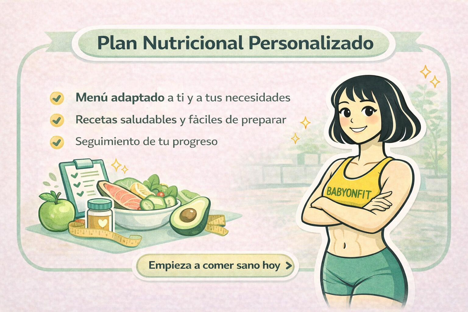Plan de Nutrición Personalizado Babyonfit (3 meses)💛 ¿En qué consiste?Un programa de nutrición totalmente personalizado, diseñado por un especialista, enfocado en acompañarte durante 3 meses para mejorar tu salud, energía y composición corporal de forma segura y sostenible.⸻✨ ¿Qué incluye?✔️ Valoración inicial completa